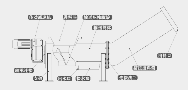 压榨筒采用管式结构,强度高,耐挤压,除进出料口外均为密闭运行。