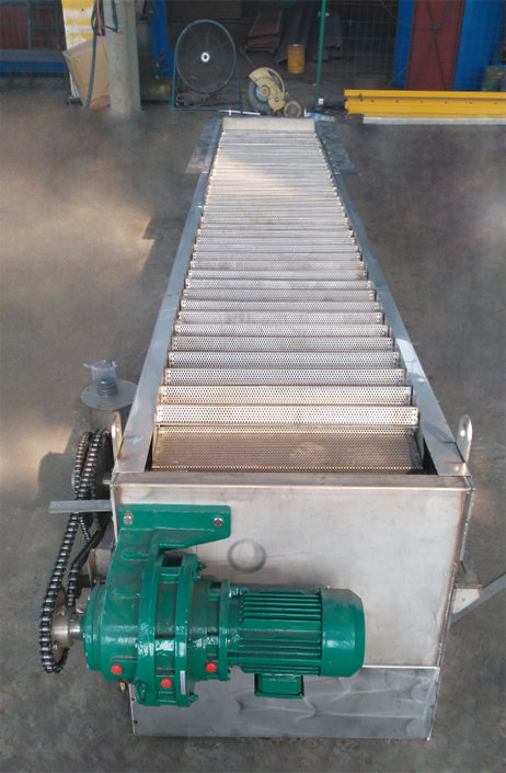 网板式阶梯格栅机配置孔板冲刷装置,以确保卸料后的回程孔板不粘附污物,彻底消除对网孔的堵塞。