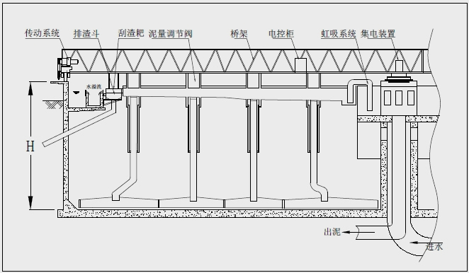 2、该设备处理量大,刮集污泥效果好;